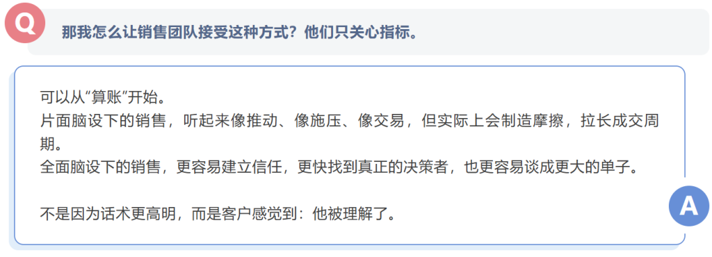 于是她更用力、更推进、更勤奋,却让客户更不舒服。